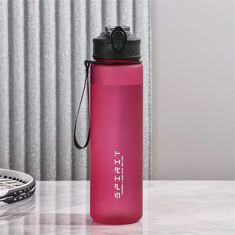 DISEÑO DURADERO Y A PRUEBA DE FUGAS: hecha de plástico de alta calidad sin BPA, esta botella de agua es duradera y no gotea en la bolsa ni mientras viaja. Pajita integrada para beber fácilmente.